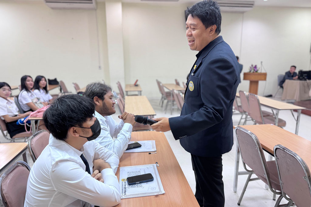 Rajapruk University organized an orientation for its new undergraduate students for the second semester of the 2025 academic year on Saturday, November 1, 2025. The event was held to prepare the students for the start of the semester. Sub-Lieutenant Wattanachai Phumarin, Director of the Academic and Educational Standards Office, officially welcomed the new students and offered guidance on adapting to university life