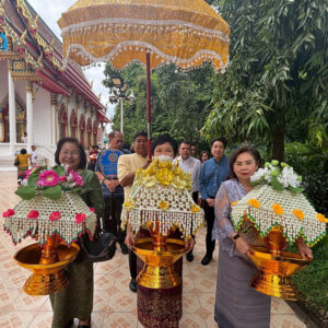 The ceremony was led by Dr. Vipapan Choosup, Licensee, Dr. Anawut Choosup, President, and Prof. Chaiyos Hemarachata, Chairman of the Rajapruk University Council. University executives, faculty members, and staff were also in attendance to participate in this significant merit-making event.