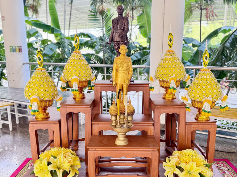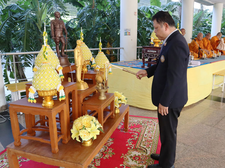 On Friday, October 10, 2025, Rajapruk University organized a merit-making ceremony to dedicate good deeds and pay homage to the late Monarchs on the occasion of Navamindra Maharaj Day (in remembrance of His Majesty King Bhumibol Adulyadej The Great, Rama IX) and Piyamaharaj Day (in remembrance of His Majesty King Chulalongkorn, Rama V).