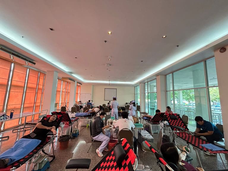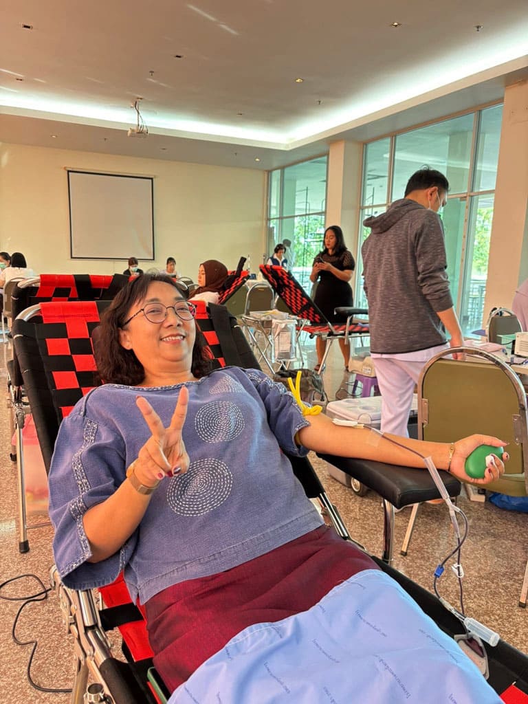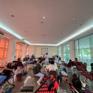 The event was held in the Hotel and Catering Services Banquet Hall of the Dr. Kamol Choosup Building at Rajapruk University, Nonthaburi Province. Executives, faculty members, staff, and students participated in the blood drive.